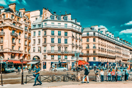 PARIS, FRANCE - JULY 06, 2016 : City views of one of the most beautiful cities in the world-Paris. Streets, buildings, cafes, people on the streets.