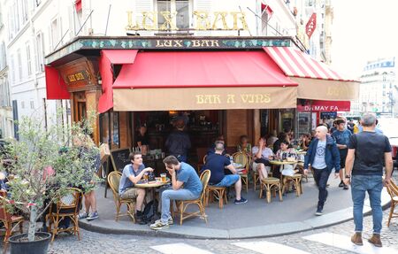 PARIS, FRANCE - JULY 22, 2011: People visit Le Sans Souci cafe in Paris, France. Le Sans Souci cafe is a typical establishment for Paris, one of largest metropolitan areas in Europe.
