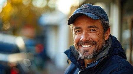 Photo portrait of a smiley deliveryman