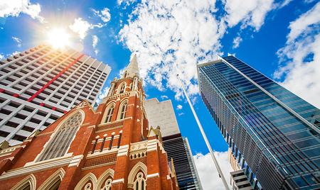 PERTH, WESTERN AUSTRALIA - December 26th, 2019: architecture and details of the streets of Perth modern CBD