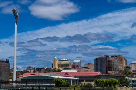 Spectacular view of Adelaide city skyline at dusk viewed from the Adelaide Hills