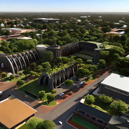 Aerial view of Campo Mourao city, Parana, Brazil. Sunny day with the view of St. Joseph's Cathedral, the mother church of the city.