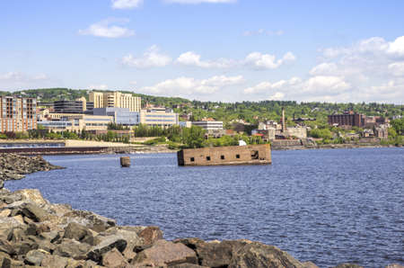 Duluth, Minnesota - June 20, 2013 View of Duluth city downtown from the Lakewalk in Canal park, Duluth