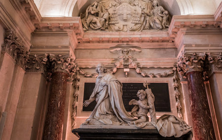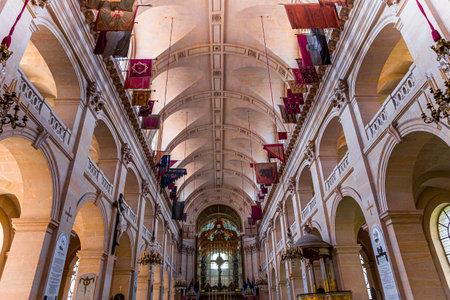 PARIS, FRANCE – MARCH 14, 2014 : Interiors and architectural details of the Hotel des Invalides, March 14, 2014, Built in year 1670, where is the grave and ashes of emperor Napoleon, in Paris, France.