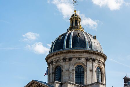Dome of The Institut de France at the bank of Seine River, Paris. A French learned society, grouping five academies, the most famous of which is the Academie francaise