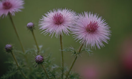 pink thistle flower in the garden with bokeh background