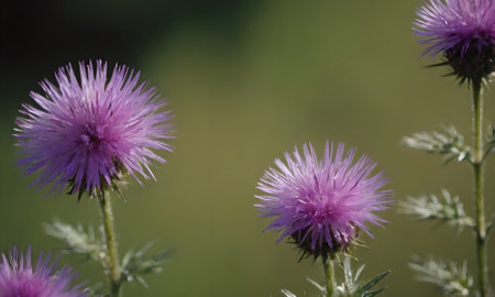 Purple thistle flowers in a meadow on a sunny day