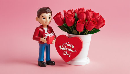 A vivid Valentine's Day scene, heart-shaped blooms.
