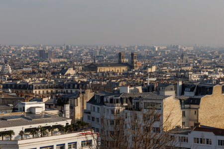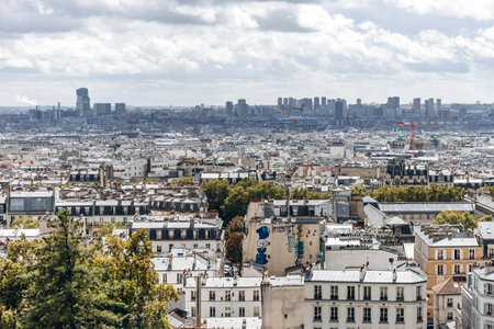 Paris, France - September 11, 2023: Panoramic view of the city of Paris from the observation deck of Sacré-Cœur Basilica in Montmartre