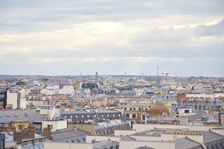 Paris rooftops view and skyline in a cloudy day in France