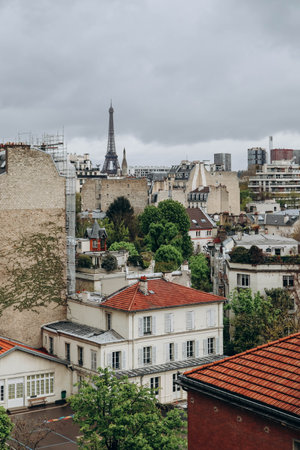 View of the Parisian rooftops and the Eiffel Tower from the 16th arrondissement of Paris