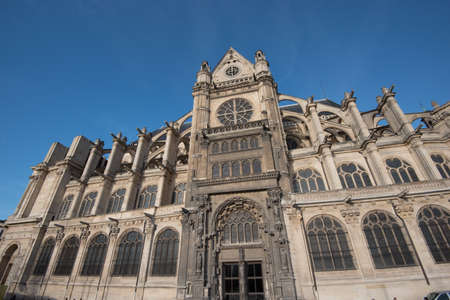 Paris, France December 31, 2015: Saint Eustache church near Chatelet with a blue sky