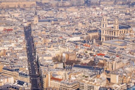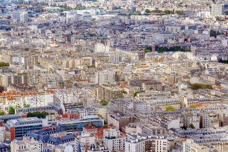 Parisian cityscape taken on the skyscraper with various houses and monuments.