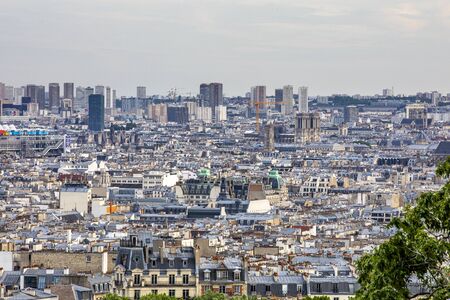 Paris, France - May 12, 2020: Aerial view of downtown Paris viewed from Montmartre hill