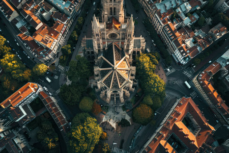 A towering Gothic cathedral showing off its remarkable height and showcasing a breathtaking stained glass window, The intricate inside of a Gothic cathedral, AI Generated