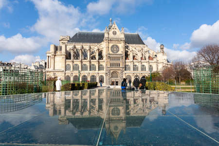 Paris , France - 20 February, 2010: People walking near Church of Saint Eustache in Paris.
