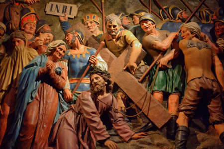 Crucifixion scene in polychrome relief, Santiago de Compostela, Spain