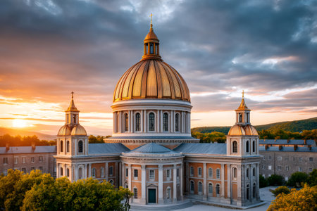 Saint Joseph's Oratory of Mount Royal in Montreal, Canada, basking in the warm glow of a golden hour sunset