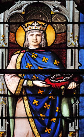 Saint Louis with the Crown of Thorns, stained glass window in Saint Severin church in Paris, France