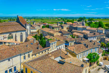 panorama view vineyards city of Saint Emilion village in Bordeaux region
