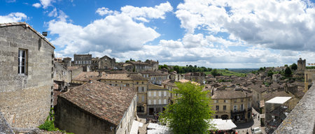 St Emilion, France - September 8, 2018: Panoramic view of St Emilion, France. St Emilion is one of the principal red wine areas of Bordeaux and very popular tourist destination.
