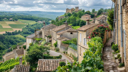 Charming French countryside rolling hills, vineyards, and picturesque villages in scenic beauty