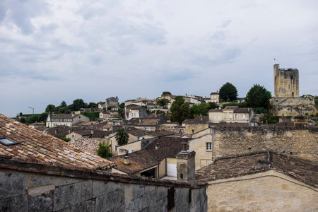 Vineyard view of Saint-Emilion, a historic town famous for its wine and picturesque landscapes, captured on a cloudy day
