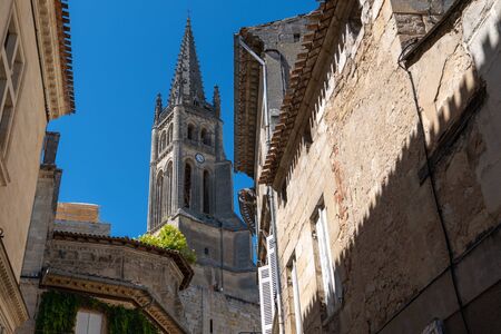 Bell tower of the church Monolith de Saint Emilion. Medieval architecture. Aquitaine, France, Europe