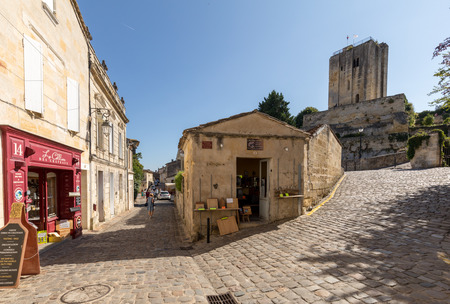 Saint Emilion, France - September 8, 2018: Rue de la Cadene is street leading down to the center of the town from the Porte of Cadene. St Emilion is one of the principal red wine areas of Bordeaux and very popular tourist destination.