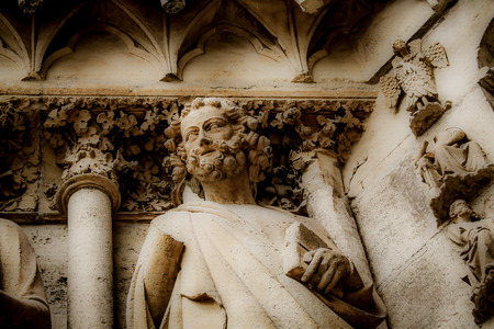 Sculptures on religious themes, artfully carved from stone many years ago. France.