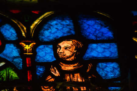 Reims France September 21, 2020 View of stained glass windows inside the Basilica of Saint-Remi, a medieval abbey church in Reims, a historical monument in the Grand Est region of France
