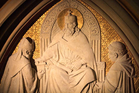 NAPLES, ITALY - OCTOBER 31, 2015: One of the sculptures in the Naples Cathedral. Is a Roman Catholic church and the seat of the Archbishop. It is known as the Cattedrale di San Gennaro (St Januarius).
