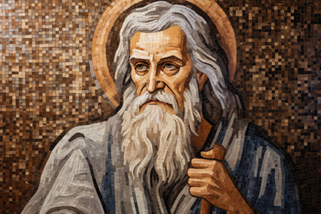 Holy Hues: A Divine Portrait of a Saint Adorning the Wall --ar 3:2