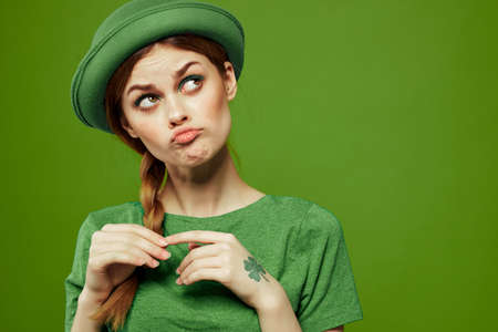 st patricks day happy woman green t-shirt hat shamrock holidays fun