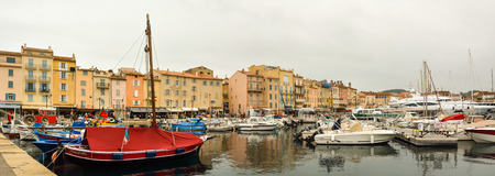 Colorful harbor of Saint Tropez at Cote d Azur view, Alpes-Maritimes department in southern France