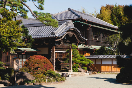 Gotokuji Temple in fall sunny day, Daikeizan Gotoku-ji in Setagaya ward, Tokyo, Japan, buddhist temple, Maneki-neko temple, with beckoning cat figurine toys, temple with Japanese fortune lucky cats