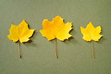 Autumn leaves on a textured background, empty copy space, flat lay, top view