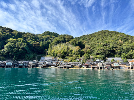 The view of Ine Funaya, the houses along the sea in Kyoto, Japan.