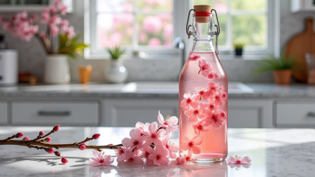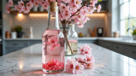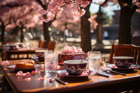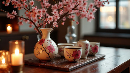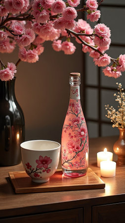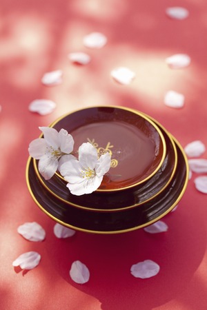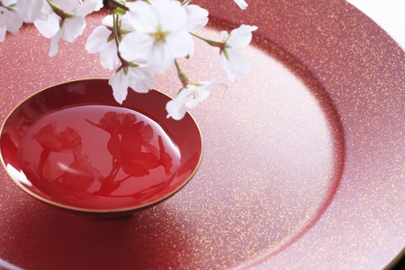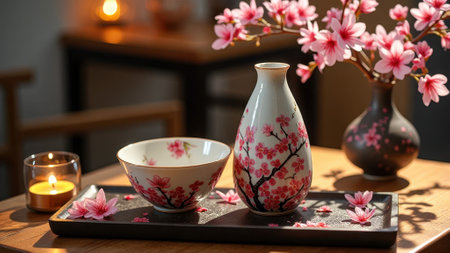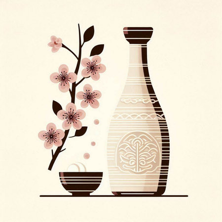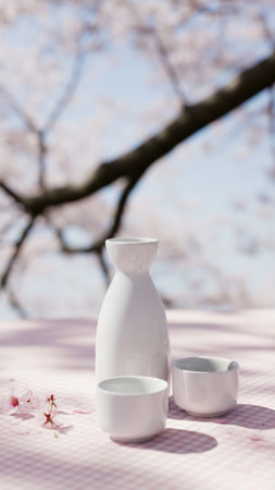 Japanese sake and cherry blossoms
