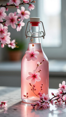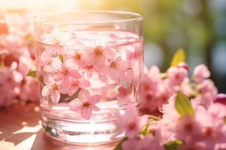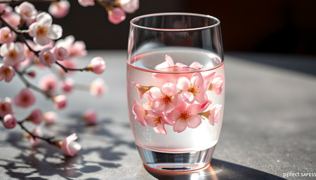 Glass and cherry blossoms
