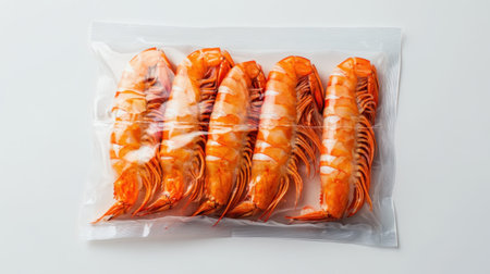 This image showcases a pack of freshly cooked shrimp in a vacuum-sealed bag, ideal for seafood preparation. The vibrant colors and packaging highlight a delicious, healthy addition to any meal.