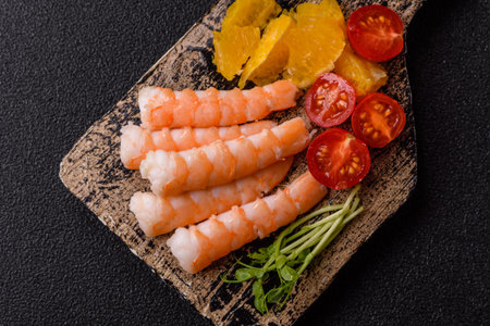 shrimps cooked seafood ready to eat prawn natural product ingredient snack. food background copy space healthy eating raw pescetarian