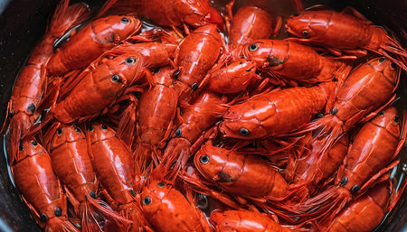 a plate of vibrant red fire shrimp is piled up