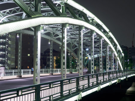 GUNMA, JAPAN - NOVEMBER 04, 2019: Beautiful old steel bridge in Maebashi. Maebashi is a city in the Kanto region of central Japan.