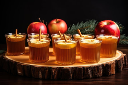 composed shot of mulled cider cups arranged in a row, created with generative ai