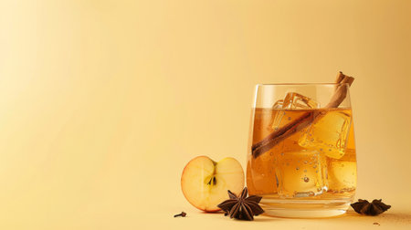 Hard apple cider cocktail with fall spices on a light yellow