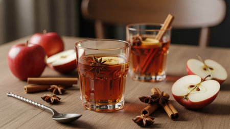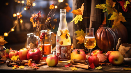 Apple cider drink on rustic wooden table