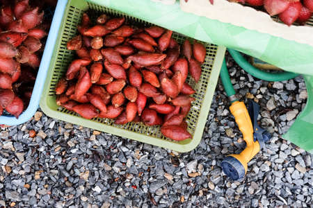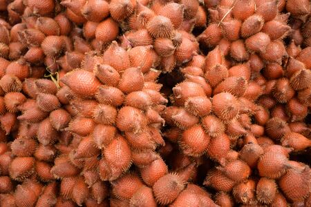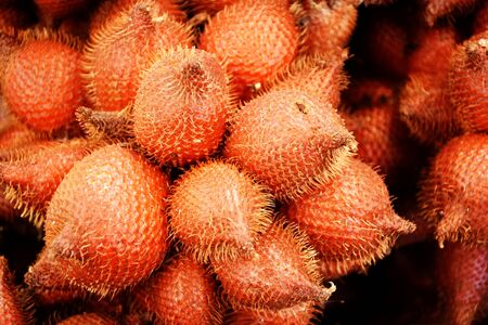 Thailand fruit, Red Fruit Salacca, Red Fresh Salacca, Salak Bali, zalacca, at the fruit market of Thailand