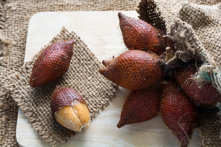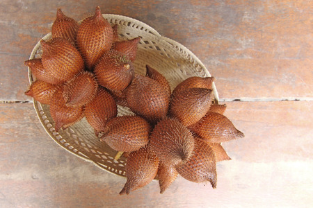 Salacca or zalacca tropical fruit on wooden