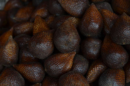 Close up view of Salak or snake fruit or Salacca zalacca. A tropical fruit from southeast asia with skin like an snake. close up view in the market.